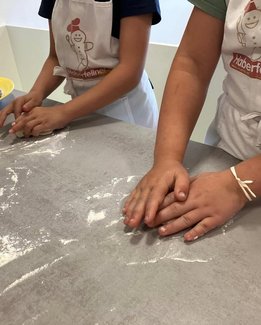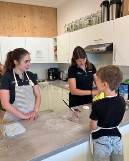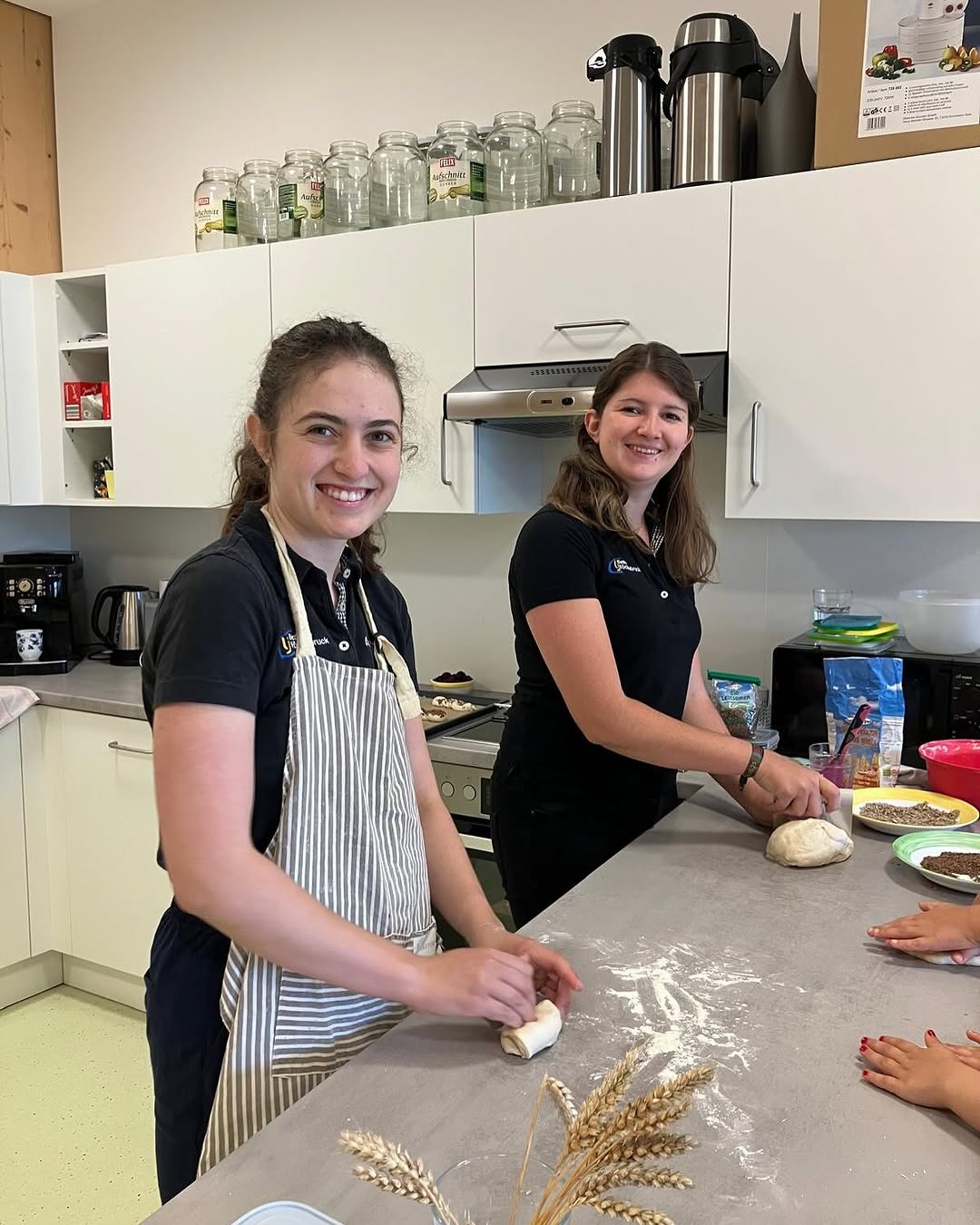 Im Zuge des Bezirksprojekts besuchten Hannah und Antonia am 19. Juli den Kindergarten in Gampern, um mit den Kindern Weckerl zu backen.